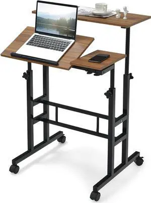 Mount-It! Rolling Mobile Standing Desk - Small Rolling Desk for Laptop, Over Bed Hospital Medical Tray, Projector Stand, Mobile Music Stand, Height Adjustable Tilting Wood with Lockable Wheels