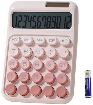Desk Calculator, Cute 12 Digits Large LCD Display Merchanical Calculator Big Buttons for School,Office,Home,Business, Solar and Battery Dual Power, Battery Include (Pink)- Type: Time Clock