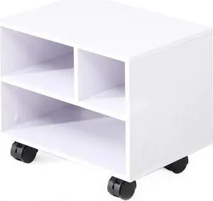 FITUEYES Under Desk Printer Stand with 3 Storage Organizer Compartments, White Mobile Small Printer Table Work Cart on Removable Casters for Home Office, 15.7 in. W x 11.8 in. D x 13.8 in. H