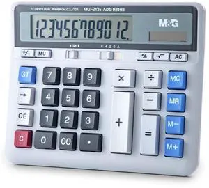 Desktop Calculator 12 Digits Extra Large LCD Display, Dual Solar Power and Battery, Mechanical Calculator with Big Buttons, Battery Include, Basic Financial Calculator for Office Home School