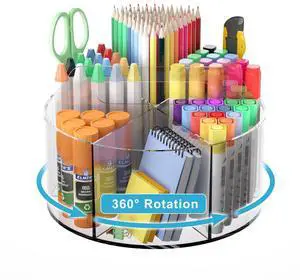 Rotating Markers Organizer for Kids, Acrylic Lazy Susan Organizers for Desks, 360 Degree Spinning Pencil Holders Pen Holders, Clear Arts and Crafts Organizer Storage, Art Supply Storage 6 Compartments