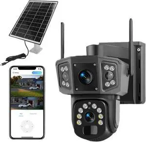 Luqeeg 4K Solar Security Cameras, Wireless Dual Lens 355°PTZ 8MP Battery Powered Cameras with Color Night, PIR Sensor, Auto Tracking, Microphone, for Home Security