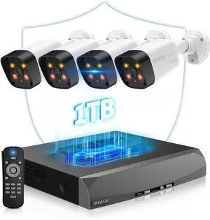 4K WiFi Security Camera System, 4X 3MP Plug-in Home Security Cameras 24/7 Recording, Dual Warning 8 Channel 265+ WiFi NVR, NO Hard Drive, 2 Way Audio, AI Detection, Color Night Vision