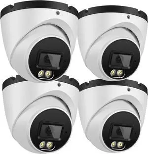 4K 8MP Security Audio Dome Camera Smart Dual Lights PoE Turret IP Camera Outdoor Indoor,2.8mm Wide Angle Lens,AI Human Detection,Color Night Vision,Built-in Mic,Metal Case,IP67 Waterproof(4Pcs)