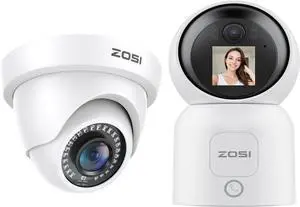 ZOSI 4K WiFi Pan/Tilt Indoor Camera & 2.0MP Outdoor Dome Security Camera Bundle - 8MP Smart Motion Tracking, 2-Way Audio, 80ft Night Vision, 4-in-1 Hybrid (TVI/CVI/AHD/960H).