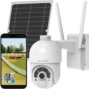 SOLIOM S800 4G LTE Cellular Security Camera Outdoor, No WiFi Solar Powered Camera for Home Security with SIM Card, 2K Color Night Vision, 360° View, PIR Motion Sensor, 2-Way Audio