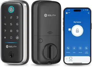 GT5BK Smart Lock 4-in-1 Keyless Entry Door Lock with Fingerprint, App, PIN, and Key ANSI Grade 3, Alexa & SmartThings Compatible Weatherproof Wi-Fi Lock for Front Door SOLITY (Black)