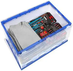 Mount-It! Collapsible Crate for Storage | Folding Plastic Container with Attached Lid | 65L Liter Capacity