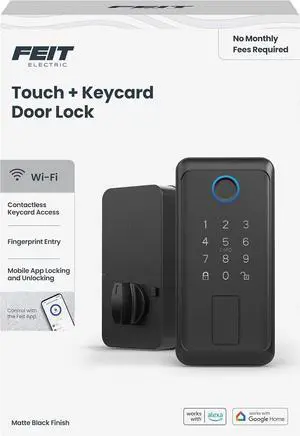 Feit Electric Smart Touch, Keycard Door Lock, Fingerprint, NFC Keycard, Keypad, App Control, Auto-Lock, 100 Codes, Weatherproof, USB-C Backup, Smart Home Security Lock, Matte Black Finish
