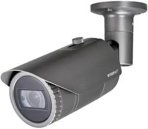 Hanwha Vision QNO6082R Outdoor Bullet IP Security System 2MP Motorized 3.210mm Varifocal Lens IR WDR DNR H.265 Dark Gray Aluminum WeatherResistant Network Surveillance System
