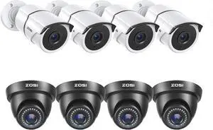 ZOSI 8-Pack Security Camera System - 1080P HD 2MP 1920TVL Dome & Bullet CCTV Cameras, 120ft Night Vision, Weatherproof Outdoor Indoor Surveillance, Compatible with 720P/1080P/5MP/4K HD-TVI Analog DVR.