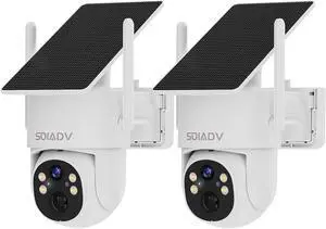 SOIADV 2Pack Solar Security Camera Wireless Outdoor with 360°View, 2K Color Night Vision, PTZ Camera for Home Security, Battery Powered, Two Way Audio, Motion Detection, PIR Alarm, IP65 Weatherproof
