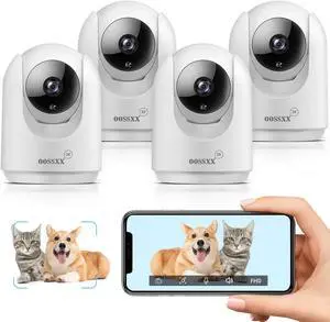 OOSSXX 2.7K Resolution 2-Way Audio Indoor Security Camera Video Baby Monitor and Pet Monitor, PTZ Nanny Cam Smart Wireless Cameras for Home Video Surveillance, 4pcs
