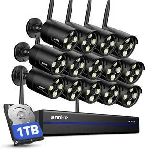 ANNKE Wireless Security Camera System-16CH Expandable 4K Security NVR, 12Pcs 2K Outdoor Cameras, 2-Way Voice, Motion Alert, Weatherproof, Mobile App-Controlled for Indoor/Outdoor Use, 1TB