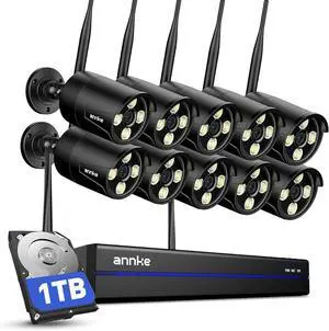 ANNKE Wireless Security Camera System-16CH Expandable 4K Security NVR, 10Pcs 2K Outdoor Cameras, 2-Way Voice, Motion Alert, Weatherproof, Mobile App-Controlled for Indoor/Outdoor Use, 1TB
