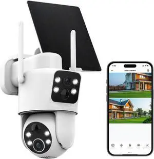 Solar Security Cameras Outdoor Wireless,2.4G/5G WiFi Cameras for Home Security, Dual Lens PTZ Motion Zone,2-Way Audio,Night Vision,Weatherproof,SD/Cloud Storage