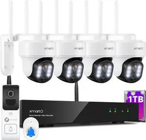 XMARTO 0-Light Night Color Solar Security Camera System(8 Cameras), 2K HD Wireless PTZ, AI Tracking, WiFi6 Long Range, 10CH Expandable 4K NVR with 120-Day Local Storage, 0 Monthly Fee