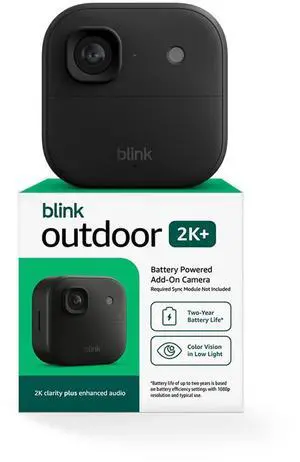 Outdoor 2K+ (newest model) Wireless smart security camera, 2K video resolution, enhanced audio, two-year battery. Required Sync Module not included Add-On (Black)