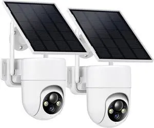 Solar Camera Outdoor Wireless, 2K Color Night Vision, Security Cameras Wireless Outdoor with 360°View, 4X Zoom, Battery Powered, 2.4GHz WiFi Solar Camera, PIR Alarm, IP65 Weatherproof, 2pack