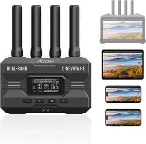Accsoon CineView HE Wireless HDMI Transmitter, 1080p60 Wireless Video Transmission System, Dual-Band 1200ft Range 60ms Latency, Up to 4 Devices, Compatible with Cineview 2 SDI/SE/Quad, for Filmmaking