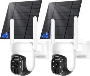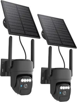 Solar Security Cameras Wireless Outdoor 2 Packs, Color Night Vision, SD/Cloud Storage, 2-Way Talk, 2.4GHz WiFi, IP65 Waterproof, 360° View