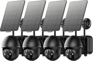 ZUMIMALL 2K Solar Security Cameras Wireless Outdoor, 360° View Outdoor Camera Wireless, 2.4G WiFi Only, Spotlight/Siren/3MP Color Night Vision/AI Detection/IP66, Compatible with Alexa, 4-Pack