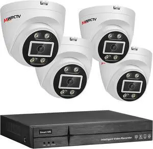 2-Way Audio PoE Security Camera System,4pcs Wired 4MP Dome IP Camera for Home Security,110°Wide Angle Lens,Smart Dual Light,Human&Vehicle Detection,8 Port 16CH 4K NVR,24/7 Recording(No HDD)