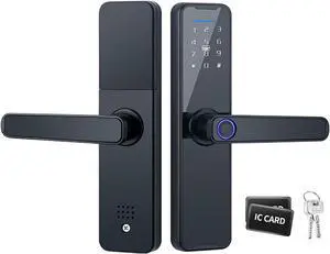 Door Lock Fingerprint Smart Door Lock with Handle, Biometric Door Locks with 2 Mechanical Keys and 2 IC Cards for Hotels, Offices and Homes