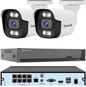 JideTech 2Pcs 4K 8MP PoE IP Bullet Security Camera Outdoor+8 Channel PoE NVR 12 CH Expandable Network Video Recorder for Home Security System Human/Vehicle Motion Detection,Two-Way Talk,24/7 Recording