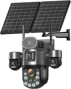 4G SIM Solar Camera 24/7 Recording Outdoor WiFi Three Screen AOV 10X Digital Zoom Auto Tracking Security Cameras ICSee(4G Cam No Card)
