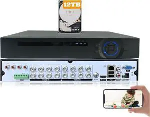 Evertech 16 Channel 5MP DVR Security System Recorder with 12TB HDD for HD-TVI, CVI, CVBS, AHD 960H/720P/1080P/5MP CCTV Security Cameras