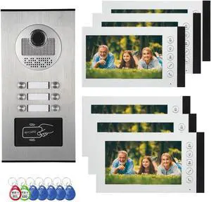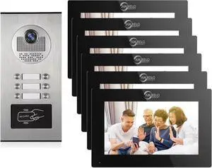 Wired Video Multifamily Apartment Intercom System,2/3/4/6/8/10/12 Units 7 inch Monitor Video Door Kit,Video Doorbell,Outdoor IR Camera Door Intercom,Monitoring,2-Way Audio (1 Bell +6 Monitor)