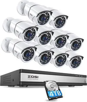 ZOSI 16CH 4K POE Security Camera System,H.265+ 16 Channel 8MP CCTV NVR with 4TB HDD for 24/7 Recording,10 x Wired 5MP PoE IP Cameras Outdoor Indoor,80ft Night Vision,Motion Alerts,Remote Access