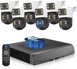 NVR Security Video Surveillance Kit Two Way Audio POE 6MP Color Night Outdoor Vision Dual Lens PTZ Surveillance System(None,8CH and 4PCS 6MP)