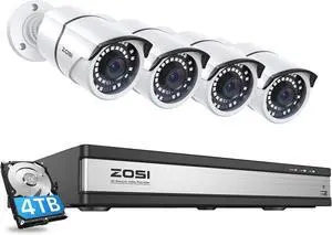 ZOSI 4K 16CH PoE Home Security Cameras System,8MP 16Channel H.265+ NVR with 4TB HDD,4Pcs 5MP Outdoor Indoor PoE IP Bullet Camera,Color Night Vision,Motion Alert,IP66 Weatherproof,for 24/7 Recording