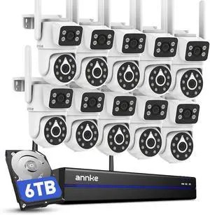 ANNKE 2.5K Dual-Lens Security Camera System-16CH Expandable 4K Security NVR, 2.4G/5G Dual-Band Wireless NVR, 6Pcs 2.5K Outdoor Cameras, 2-Way Voice, IP66 Weatherproof, 24/7 Protection, 6TB