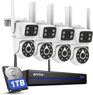 ANNKE 2.5K Dual-Lens Security Camera System-16CH Expandable 4K Security NVR, 2.4G/5G Dual-Band Wireless NVR, 4Pcs 2.5K Outdoor Cameras, 2-Way Voice, IP66 Weatherproof, 24/7 Protection, 1TB