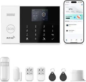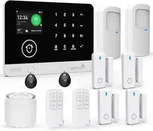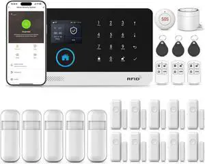 WiFi Wireless Alarm System for Home Security, GSM Home Alarm 24 Piece Kit with Siren, PIR Motion Sensors, Remote Controls, Window/Door Sensors (Tuya and Smart Life APP)