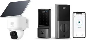 eufy Security SoloCam E30 with Smart Lock C210, Solar Powered, 360° Pan, AI Tracking, 2K Clarity, Security Cameras Wireless Outdoor, HomeBase S380 Compatible, No Monthly Fee