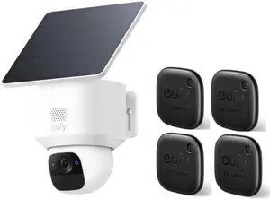 eufy Security SoloCam E30, Security Cameras Wireless Outdoor, Solar Camera Outdoor Wireless, by Anker SmartTrack Link (Black, 4-Pack), Android not Supported, Works with Apple Find My