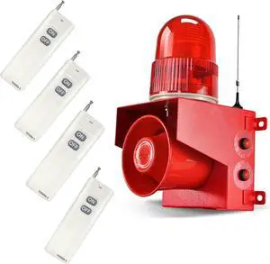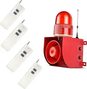 Industrial 0.3mile Wireless Remote Control Siren Alarm Outdoor 120dB Loud Horn Emergency Safety Alarm with 4 Remote Controller, Adjust Volume and Tone, Strobe Light DC24V