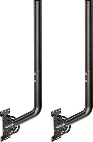 28" Heavy Duty Adjustable Antenna Wall Mount Iron Spray Paint J-Pole Solid Mast Bracket for Starlink (Adapter Required), TV Antennas, Weather Stations 1.38" OD Pivot Base (2-Pack Black)