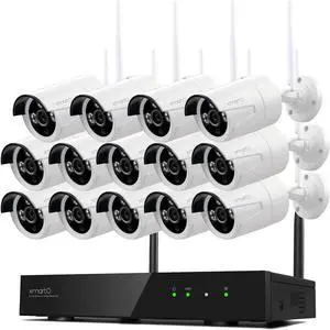 XMARTO Wireless Security Camera System 16CH Wi-Fi 6 14PC 2K Wireless Security IP Camera System(Built-in Router, Plug N Play, Mobile View, Night Vision, Built-in Audio Mic)