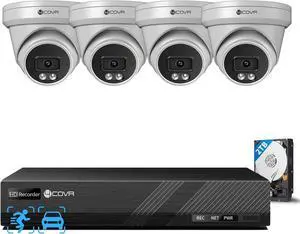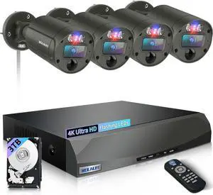 Type: Two 8MP Outdoor Spotlight Camera Bullets bundled with two 5MP Outdoor IP cameras and a 4K 8 Channel NVR provides not only 24/7 recording but remote access, deterrence, and intelligent detection. The 5MP bullet camera has a built-in microphone for audio recording as well. The 8 Channel NVR Recorder comes