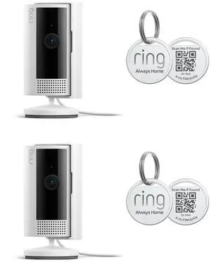 Ring Indoor Cam Plus (newest model), Home or business security, Retinal 2K for crisp, true-to-life video quality, 4x Enhanced Zoom, Low-Light Sight, 2-pack, White