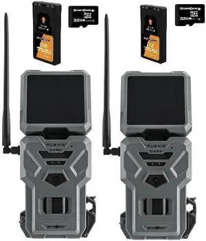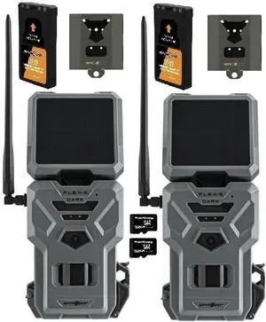 SPYPOINT Flex-S Dark Solar Cellular Trail Camera, Integrated Solar Panel, On-Demand Capable, LTE Connectivity, 100-foot Detection Range with LIT-22 Rechargeable Batteries 32GB SD Cards (2 Pack)