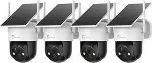 4 Pack 4G LTE Cellular Solar Security Camera Bundle, Wireless Outdoor 2K Cam No WiFi Required SIM Included, 360° View PIR Motion Siren 2-Way Talk Color Night Vision IP66