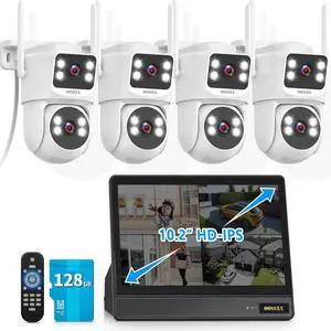 Camcamp Wireless Security Camera System with Monitor,10x Zoom 5MP Dual Lens Security Camera Outdoor with Night Vision,Motion Detection,Expandable 10CH 4K NVR.for Home Surveillance Kits Indoor/Outdoor