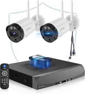 2K Security Cameras Wireless Outdoor, Cameras for Home Security with 2-Way Audio, PIR Motion Detection, Night Vision, Cloud Storage, IP65 Weatherproof, Alexa & Google Home Compatible