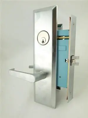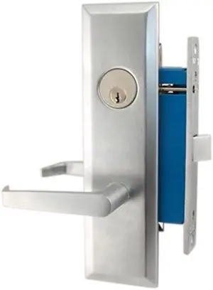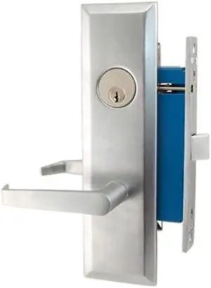 Type: Mortise Lock Knob Vestibule Function Always Locked Storeroom Latch Only Lockset with 1-1/4" x 8" Wide Face Plate - Through bolted plate assemblies, Screwles knobs